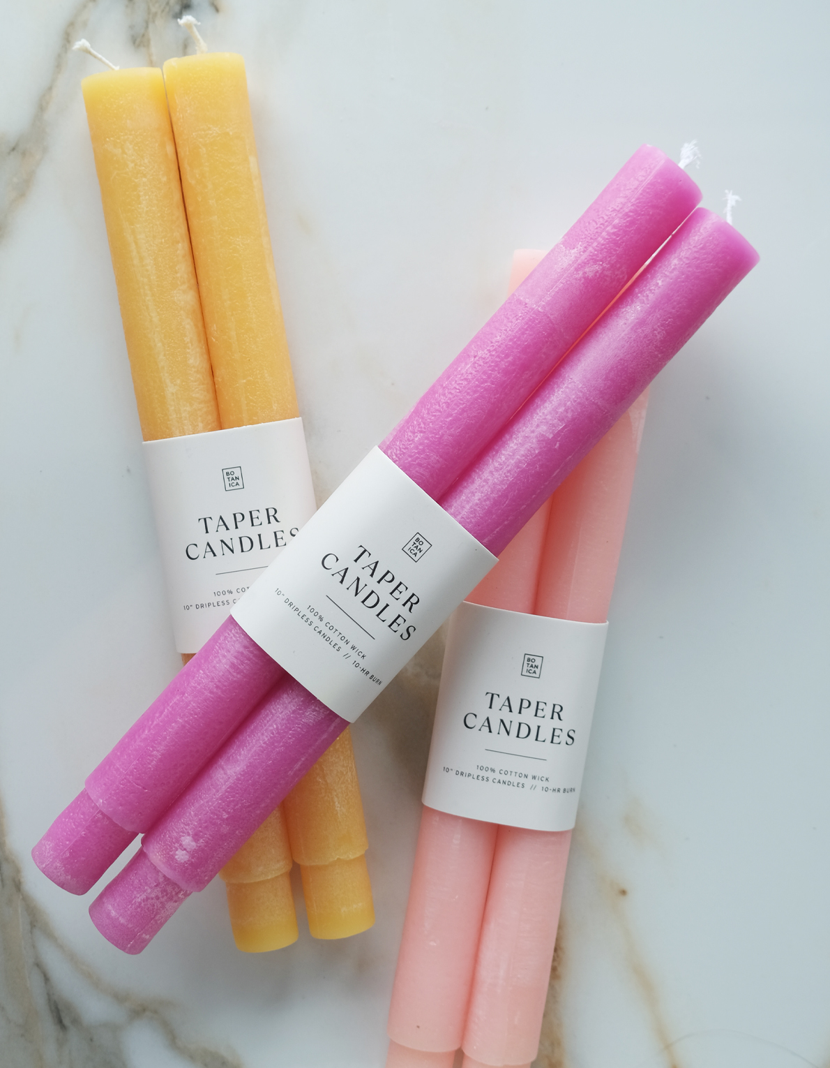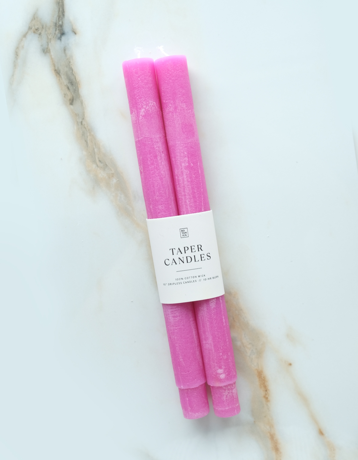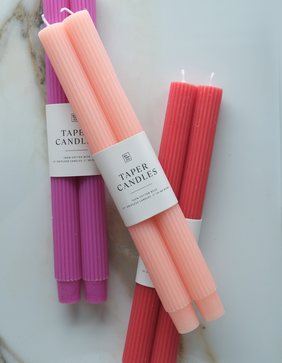 Botanica taper candles pairs are hand-dyed in an array of classic and sophisticated shades. Each candle is 7/8″ diameter, and burns for approximately 10 hours, available in classic pillar & fluted shapes.